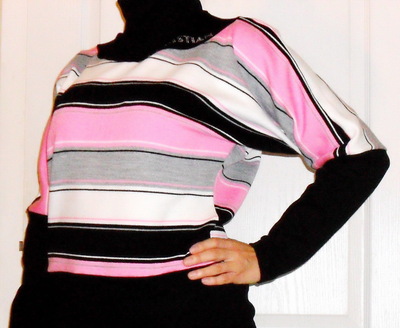 Свитерок свободный, крой — летучая мышь, в полосочку, под горло, состав 70%акрил,30%шерсть, Размер универсальный 42-48.Очень нежная расцветка, отлично освежает лицо.Идет всем -и блондинкам брюнеткам и шатенкам. |