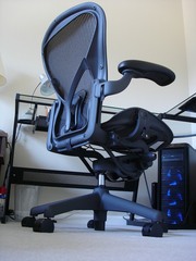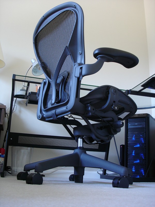 Эргономичное кресло Herman Miller Aeron сделано из экологически чистых материалов. Кроме того, кресло устраняет причину плохой осанки, поддерживая поясничный отдел позвоночника благодаря запатентованная система PostureFit®. Вы можете подрегулировать PostureFit под себя, чтобы добиться наиболее комфортного уровня поддержки. База и основа кресла Herman Miller Aeron выполнены в графитовом цвете, подлокотники из черной кожи.