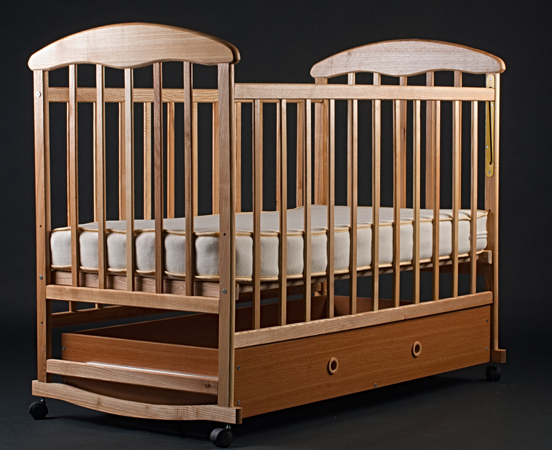 Описание Кроватка детская Наталка с ящиком. Материал Ясень: