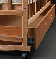- Возможность качания в кроватке при снятых колесиках и ящике;