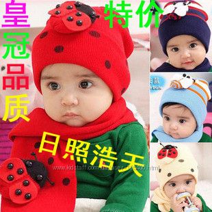 Наборчики шапка+шарфик "Божья коровка" - Детская одежда