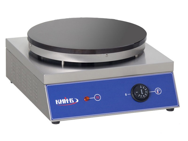 Блинница однопостовая БЛ1-400 с диаметром рабочей поверхности 40см, Мощность 2,5 кВт, Габариты 440х500х190 мм, Вес 19 кг. Цена лучшая