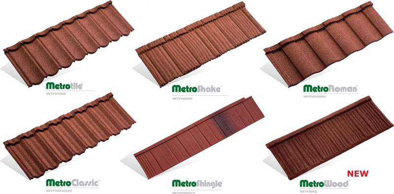 Композитная металлочерепица Metrotile представлена в шести разнообразных формах: