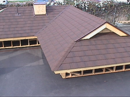 МЕТРОШИНГЛ (METROSHINGLE): композитная металлочерепица с рельефным профилем, имитирующим кровлю из деревянной дранки.