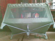 Комплектуется маскитной сеткой,съемным матрасиком, манеж-трансформер, слаживается в сумку.