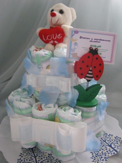 Pretty gift предлагаем тортики из подгузников, букетики из детской одежды, оригинально украшенные подарочные наборы для новорожденных