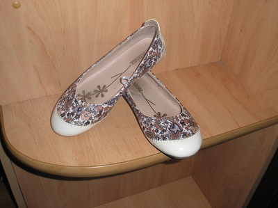 Туфельки на девочку фирмы Ариал 34 размер, одевали 1 раз, но быстро выросли. Внутри кожа, верх - текстиль. Жесткий задник. Лакированный носочек. |