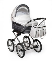 Комплектация: рама, люлька, прогулочный блок, матрасик, накидка на ножки, корзина для покупок, сумка для мамы, дождевик, москитная сетка.