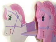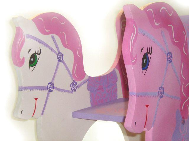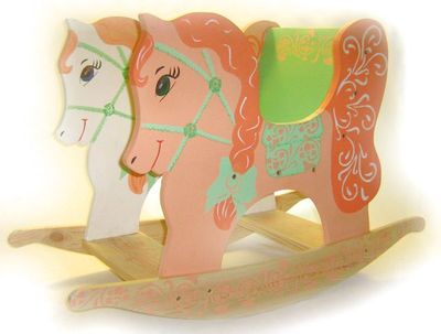 В наличии есть лошадки разных цветов: оранжевая, бирюзовая, розовая и лиловая.