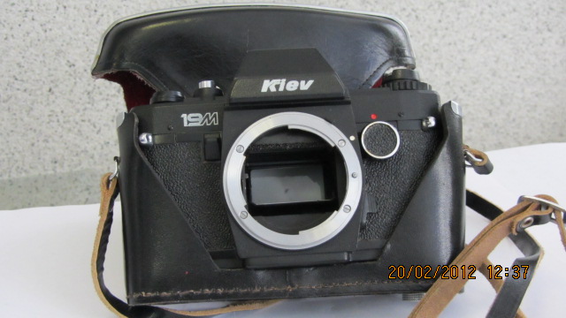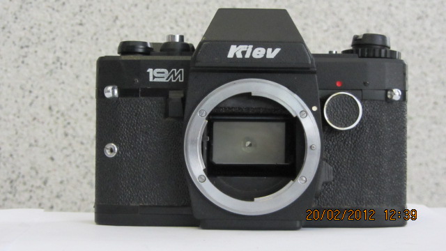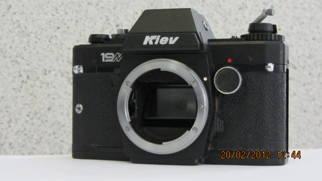 КИЕВ-19М-малоформатный зеркальный фотоаппарат системы ТТЛ с полуавтоматической установкой экспозиции.