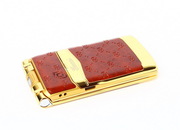 Louis Vuitton LV-8 фешенебельный VIP-телефон на 2 сим карты раскладной Корпус: металл, кожа, позолота; Габариты: 105х56х13 мм Батарея: 6800мА Время работы в режиме ожидания: 300 - 400 ч. Время работы в режиме разговора: 3 - 5 ч. Характеристики: - тонкий телефон от LOUIS VUITTON с двумя экранами - информационный однострочный дисплей по технологии OLED - основной сенсорный экран 2,6", 260 тыс. цв. (320х240) - одновременная работа 2 SIM-карт - поворотная фото/видеокамера 0,3 Mpix (максимальное разрешение 640х480), функция быстрого переворота камеры - Bluetooth 2.0 - MP3/MP4-плеер - FM-радио - Чтение электронных книг - Встроенная память: 506KB - Поддержка карт microSD (до 16Gb) Особенности: - Память до 260 контактов; 200 SMS; 100 MMS - Стереодинамики, 64-тональная полифония, mp3/3gp на звонок - WAP, GPRS, MMS - Подключение к компьютеру через USB - Календарь, задачи, будильник, мировое время, секундомер - Фотография/Мелодия на контакт - Включение/выключение телефона по расписанию - 5 будильников, работает при выключенном телефоне, различные режимы от понедельника до воскресенья - 1 встроенная игра - Диктофон, калькулятор, записи, конвертер На нашем сайте представлен полностью русифицированный аппарат, готовый к использованию в GSM сетях. коробка, инструкция, дата-кабель, стерео-гарнитура, 2 АКБ, зарядное устройство.