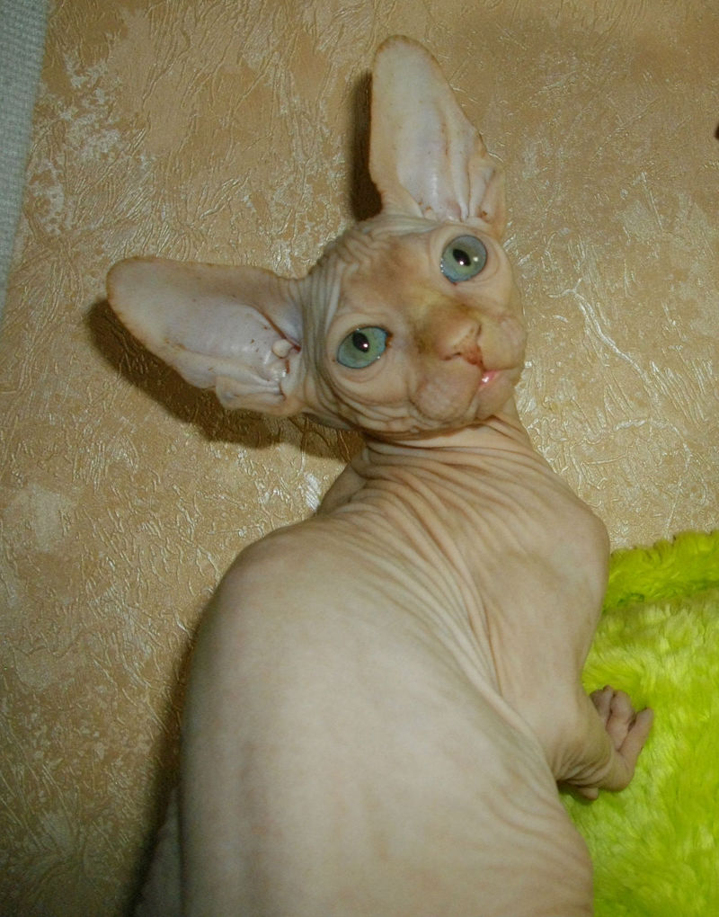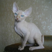 Предлагается к продаже очаровательный мальчиш канадского сфинкса.Окрас ред-поинт с небесно-голубыми глазами,которые остануться такими на всю жизнь.Резиновая горячая кожа,длинный хвост , огромные уши и немного застенчивый взгляд-все это моментально покорит вас,и заставит испытывать материнский инстинкт по отношению к этой горячей обезьянке.Д.р.14.12.11г.Приучен к когтеточке и лотку без наполнителя.При переезде в новый дом котенок получит приданое:мисочка для корма,одноразовая пеленка,две игрушки на первое время и международный ветеринарный паспорт. |