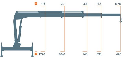 Вылет стрелы позволяет равномерно распределять грузы по всей длине кузова грузового автомобиля.