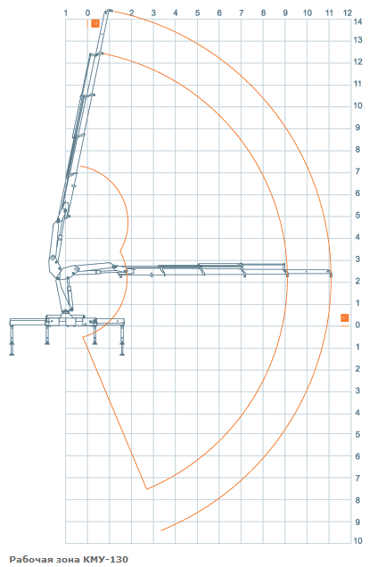 Благодаря повышенному вылету стрелы КМУ-130 способен перемещать строительные материалы на высоту до 15 метров. Эта особенность позволяет наиболее эффективно использовать кран-манипулятор КМУ-130 на строительстве малоэтажных жилых домов и коттеджей (высотой 3-4 этажа), в частности для монтажа каркасных металлических и сборных конструкций.