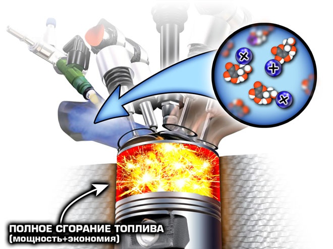 Свойства. Технология позволяет ионизировать любое топливо (бензин, ДТ) ионами металлов-катализаторов, которые ускоряют горение топливно-воздушной смеси в объеме камеры сгорания в 3 раза и замедляют волну горения по металлу в 2 раза. В результате сгорание происходит наиболее интенсивно, что позволяет: увеличить мощность двигателя на 10–25 %, снизить содержание СО и СН до минимума и сэкономить значительные средства на топливе (расход топлива сокращается на 10–25 %; на практике многими автомобилистами замечено, что одна упаковка «Реагент 3000» для топливной системы дает максимальный экономический эффект до 1 топливного бака, а средний показатель – снижение на 15–17% от ранее расходуемого топлива: это позволяет в 1,5–2 раза окупить средства, затраченные на приобретение «Реагент 3000» для топливной системы).