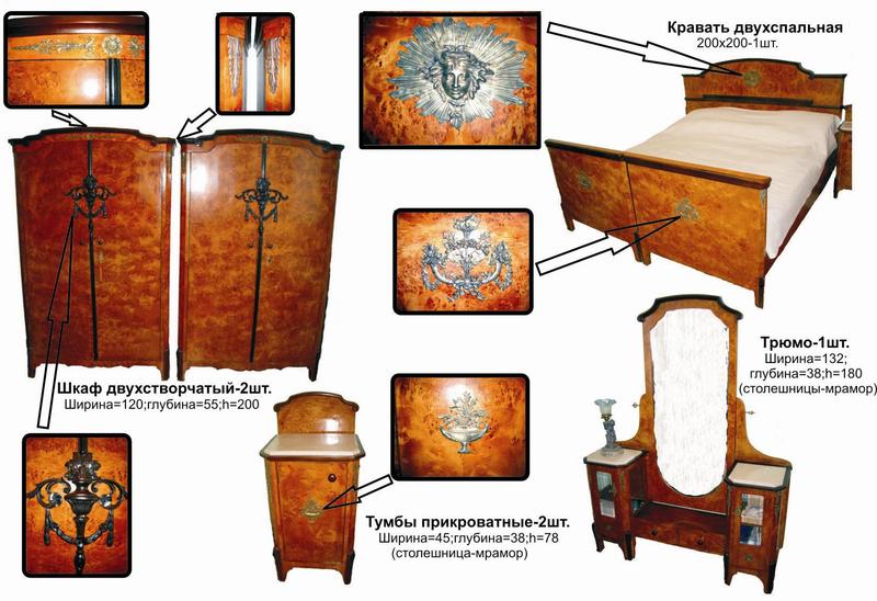 СПАЛЬНЯ ИЗ НАТУРАЛЬНОГО ДУБА ШПОНИРОВАННА КАПОМ ТОПОЛЯ (СМОТРИТСЯ КАК КАРЕЛЬСКАЯ БЕРЕЗА), ИСПОЛНЕНА В СТИЛЕ ПСЕВДОАМПИР. ФАСАДЫ УКРАШЕНЫ ДЕРЕВЯННЫМИ И БРОНЗОВЫМИ НАКЛАДКАМИ. СТОЛЕШНИЦЫ ВЫПОЛНЕНЫ ИЗ ГРЕЧЕСКОГО МРАМОРА. СПАЛЬНЯ В ОТЛИЧНОМ СОСТОЯНИИ, ПОСЛЕ РЕСТАВРАЦИИ. СТОИМОСТЬ $14 000. БОЛЕЕ ДЕТАЛЬНУЮ ИНФОРМАЦИЮ МОЖНО ПОЛУЧИТЬ ПО ТЕЛ.: 0988372353, 044 2537301, ЮЛЯ |