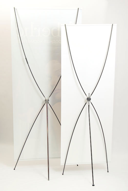 Предназначена для размещения в местах продаж, презентаций, промоакций, на выставках. Алюминиевые пружинные пруты конструкции расположены в виде буквы "Х".