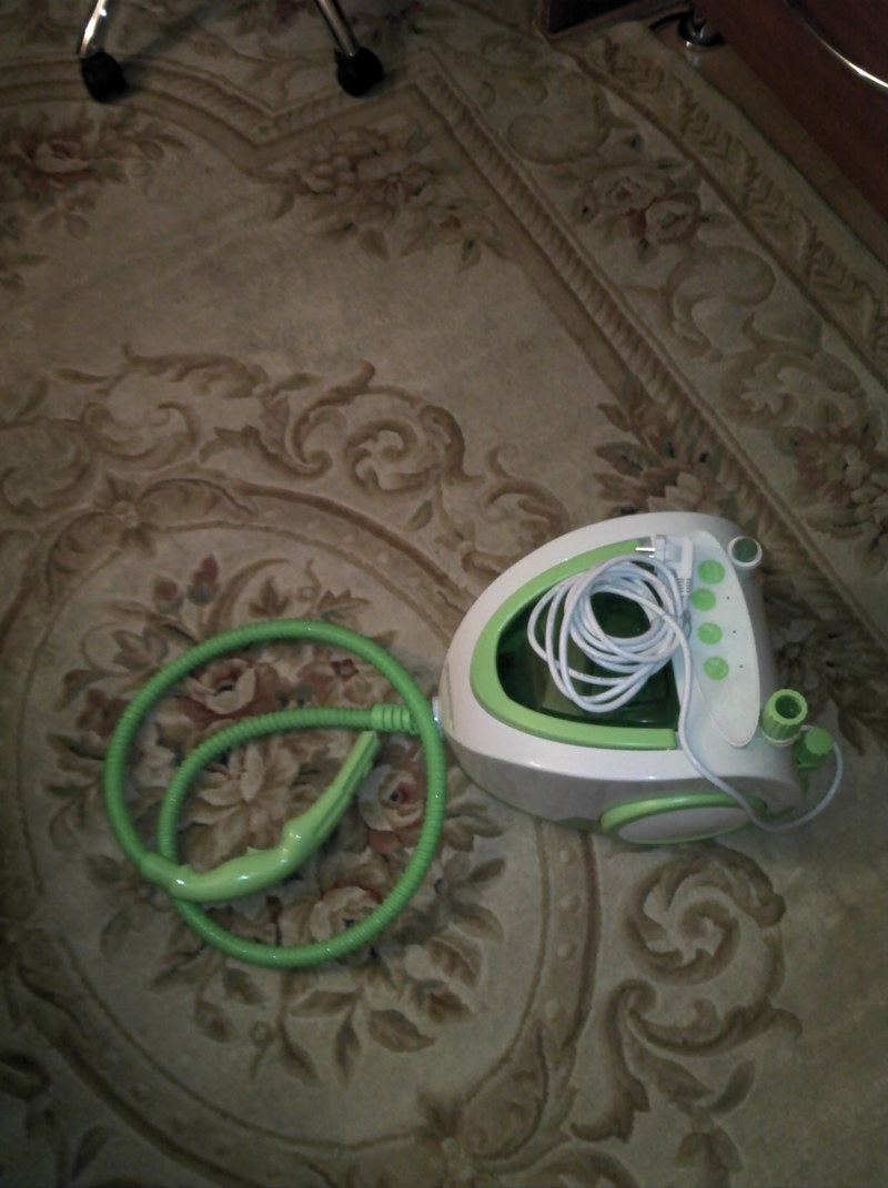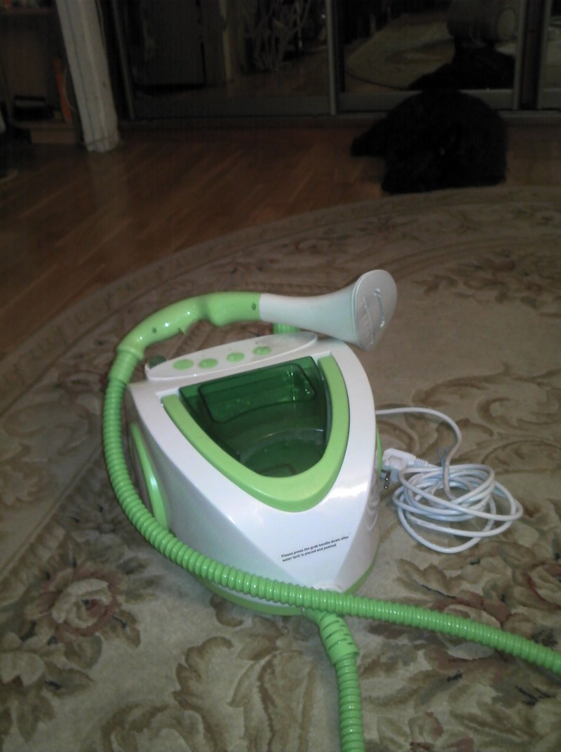 Пароочиститель, способен чистить и гладить одежду, очищать ковры, мыть стекла/зеркала + насадки для разных видов уборки с помощью пара. 3 режима мощности. |