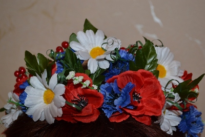 Продам украинские веночки с атласными лентами. Делаю на заказ, в любом ассортименте цветов,а также в любом количестве цветов , под заказ клиента |