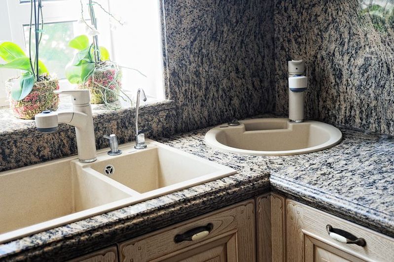 Гранитная столешница не поглощает воду и прочие жидкости, поэтому на ней не остаются пятна, даже если Вы что-либо разольете.