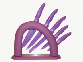Набор ножей с тефлоновым покрытием и удобными ручками из бакелита. Благодаря тефлону эти ножи более прочные и долговечные, чем обычные. В комплекте идет оригинальная акриловая подставка.