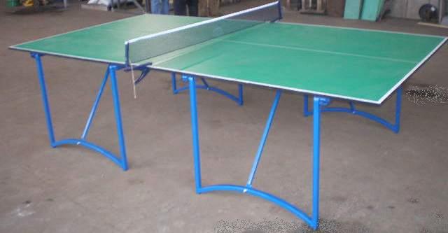 Стол настольного тенниса изготовлен из ламинированной плиты ДСП, складной, переносной-1650,00. Также есть в наличии передвижные на колесиках и уличные изготовленные из ламинированной влагостойкой фанеры. Стол для настольного тенниса уличный всепогодный с креплением к земле-3500,00 |