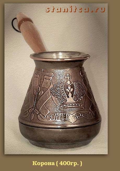 Кофеварки (Турки) изготовлены по уникальной технологии из листовой меди марки М1М (М2М) толщиной 1мм. Корпус соединяются с донышком методом припоя. После, наносится рисунок по всей окружности корпуса. Внутренняя поверхность турок покрывается пищевым оловом толщиной 9-12мкм.
