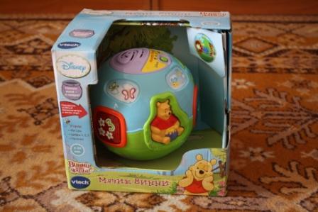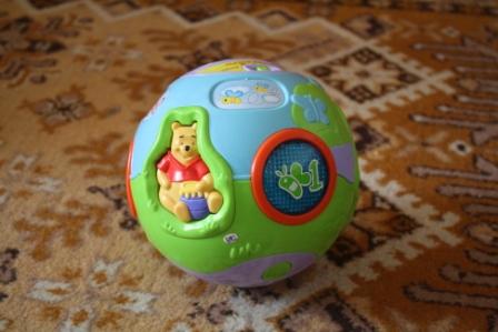 Развивающая игрушка Мяч новая в упаковке. Нам подарили но ребенку не очень подошло. Эта игрушка специально разработана для физического и умственного развития ребенка. С помощью двух режимов игры ваш малыш запомнит цифры, названия фигур, познакомится с друзьями Винни и выучит веселые песенки. Вращая мячик и нажимая на кнопки, малыш разовьет мелкую моторику, тактильные ощущения и музыкально-слуховые навыки. Мелодии приятные. Винни Пух говорит на русском языке. Рекомендовано для детей возрастом от 6 месяцев. |