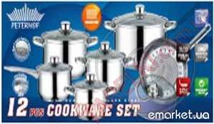 Набор посуды, из 12 предметов. Изготовлен из высококачественной нержавеющей стали 18/10. Трехслойное капсульное дно с повышенной термоотдачей равномерно распределяет тепло. Пища быстро нагревается и долгое время сохраняет тепло. Ручки жаропрочные, удобные и практичные. Набор подходит для использования на всех видах кухонных плит, в том числе на индукционных. Можно мыть в посудомоечной машине. Легко очищается.