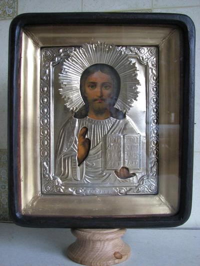 Икона старинная "Господь Вседержитель" 19 в. в окладе. Возможна пересылка по Украине. - Церковная утварь