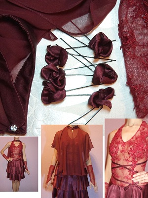 - Заколки (6 шт.) – шпильки с розочками из того же атласа, что и низ платья. Дополняют образ!