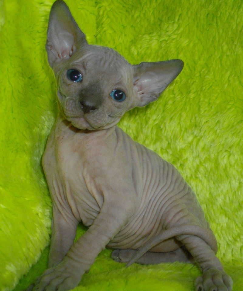 Питомник ” Аметист” предлагает к резервированию мальчика канадского сфинкса редкого ,эксклюзивного окраса-голубой минк с голубыми глазами.Д.р.28.02.12 г.При переезде в новый дом наши малыши ко всему приучены,проглистованы,привиты,а также получают приданое(мисочка для корма,одноразовая пеленка,игрушка на первое время,а также сертификат питомника со скидкой на приобретение зоотоваров.В питомнике есть и друие котята дешевле. |