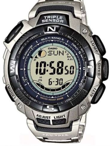 Часы наручные Casio pro trek prw-1500t-7ver Продам наручные часы Casio pro trek prw-1500t-7ver, часы наручные Casio pro trek prw-1500t-7ver новые, цена 4340 гривен. Доставка по Киеву бесплатная, в Киеве возможен самовывоз. Доставка по Украине бесплатная, оплата при получении на складе Новой почты. Гарантия 12 мес. С более подробной информацией можно ознакомиться на сайте Watch-and-Watch. Часы есть в разной цветовой гамме. Купить наручные часы Casio pro trek prw-1500t-7ver в Киеве: тел .: 067- 997 -26 -73, 044- 229-08-00 Описание Casio pro trek prw-1500t-7ver: Бренд Casio Pro trek Страна производитель Япония Гарантия 12 мес. Коллекция PRO-TREK Пол Мужские Механизм Кварцевый (Солнечная батарея) Модуль 3134 Стекло Минеральное Тип индикации Цифровые Корпус Полимер Водонепроницаемость 200 метров Браслет Титановый браслет Подсветка Электролюминесцентная подсветка Защита корпуса часов Морозоустойчивость Функции Число месяца; День недели; Будильник; Секундомер; Календарь Дополнительные функции Прием радиосигнала; Измерение барометрического давления; Измерение температуры; Компас; Измерение высоты; Отображение возраста луны; Отображение таблицы приливов - отливов; Подвижное обрамление корпуса; Мировое время; Таймер обратного отсчета; Индикатор зарядки элемента питания; 12/24ч. формат времени; Питание от солнечной батареи Размер корпуса 48.1x56.2x13.9 мм. Вес изделия 113 грам