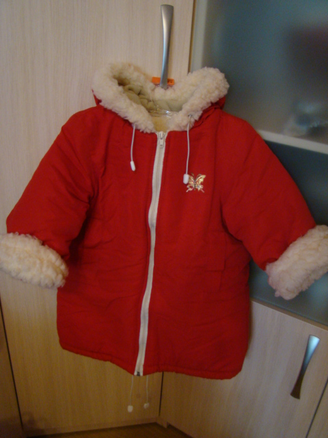 Пальто на девочку 3-4 года. Длинна куртки - 55см, длинна рукава - 37см, с капюшоном (не отстегивается). |