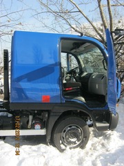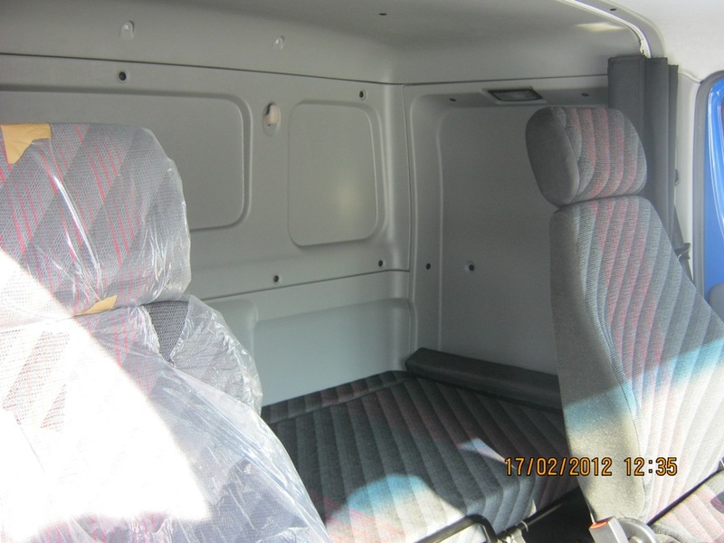 Кабина: спальная кабина с одним местом, стальная, оцинкованные панели, антикоррозийное покрытие, откидной механизм, внешние зеркала по директиве ЕС 2003/97/EC. Боковая защита с габаритными фонарями. Сиденье водителя и сменного водителя на пневматической подвеске. Регулируемая рулевая колонка. Цифровой тахограф, ручные стеклоподъемники, кондиционер с ручным управлением. Противосолнечные козырьки, пространство для хранения вещей, аудиоподготовка для установки радио/CD (динамики + антенна). Ширина кабины – 2 550 мм.