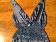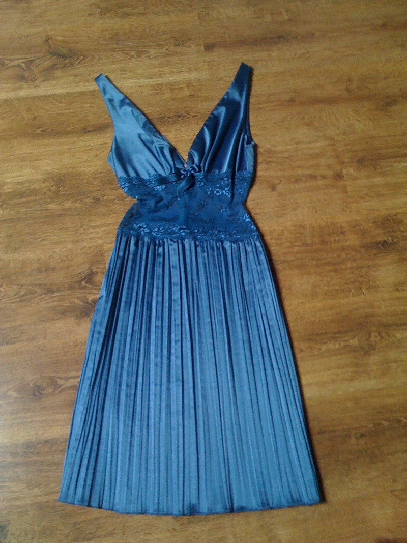 Очень красивое домашнее платье/ниглиже Fichissima изготовлено из атласас с элементами кружева. Абсолютно новое (но этикетки к сожалению выкинаула). Верз с глубоким декольте, юбка из плисерованного атласа. Мерки: IT - 3 EUR - 75 Franc - 90 UK - 34 талия 60-65 (гипюр на талии тянеться) длинна - 100см |