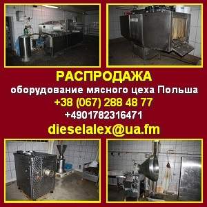 Предлагаем оборудование для мясного цеха. Оборудование мясного производства - из Польши, обанкротившееся предприятие. Мясной цех - Оборудование мясного цеха б/у. Оборудование мясного производства - без посредников из Польши. Оборудование мясного производства - из первых рук! Pakowaczka prozniowa VARIOWAK 2008 r. 140.000 zl Полный перечень оборудования по запросу на почту. Андрей +38(067)2884877 +4901782316471 dieselalex@ua.fm |