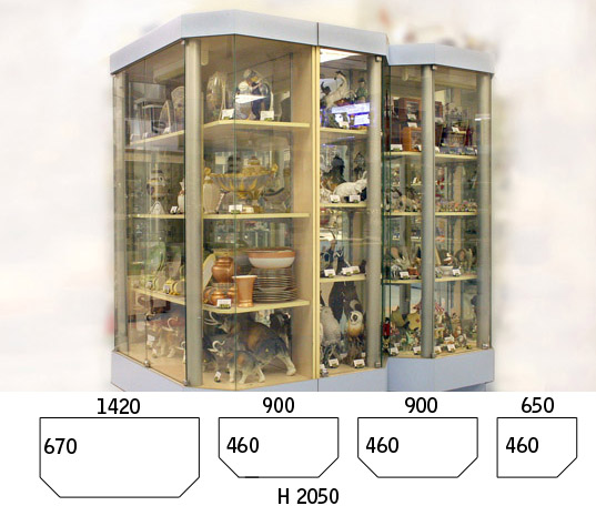 торговое оборудование с подсветкой, стекляные витрины с зеркалами |