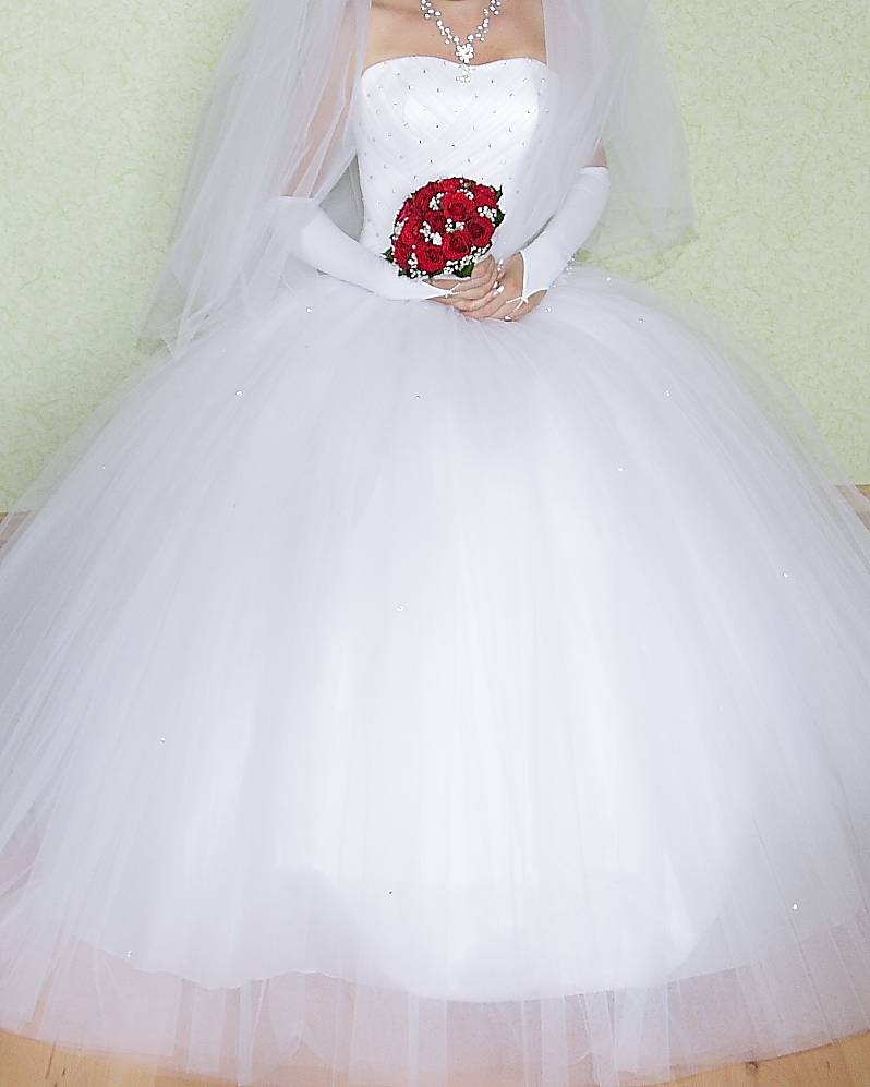 Белое пышное платье, размер 44-46, одевалось один раз, не венчанное. Аксессуары в подарок! |