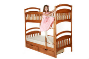 Детская двухъярусная кровать “Карина”, из натурального дерева (ольха)от производителя(длина 198см,ширина 88см,высота 165см).Кровать“Карина” можно использовать,как две отдельные односпальные кровати. Мебель дополнительно комплектуется удобными выдвижными ящиками и ортопедическими матрасами. В изготовлении используются натуральные материалы и сертифицированные качественные лаки. Ищем представителей в регионах. Производим разные модели кроватей. Доставка в любой город Украины. Цена 2160 грн., с выдвижными ящиками- 2500 грн., полная комплектация 3100 грн. Карина- люкс ( без матрасов) – 3400 грн., полная комплектация с бортиками– 4000 грн. |
