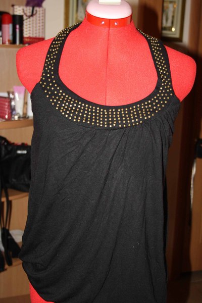 Майка-борзовка черного цвета.На груди и лямки "усыпаны" металическими стразами.Состояние-отличное,никаких дырочек,зацепок,все стразики на месте. Размер 42-44 пишите на почту katy138810@mail.ru |