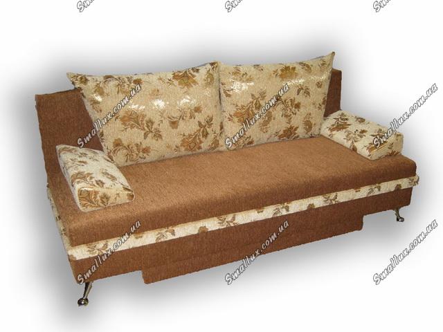 Спинка представляет собой раму из фанерных брусков с заглушинами из ДВП с двух сторон. Мягкий элемент спинки из ППУ толщиной 100 мм. Со всех сторон спинка обернута синтепоном. На спинку одевается чехол с застежкой «Молния». В верхней части на спинке установлены две пластмассовые опоры с гвоздем для предотвращения протирания чехла при раскладывании дивана. Спинка на двух металлических петлях крепится к коробу для постельных принадлежностей болтами.