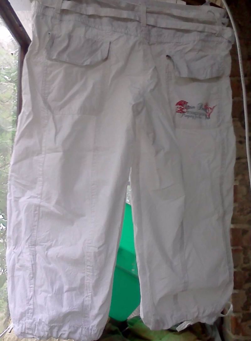 одевались пару раз.без пятен. состояние идеальное. состав 100% хлопок об. талии 90см длина бок.шва 69 см длина внут. шва 45см дополнительно по запросу |