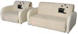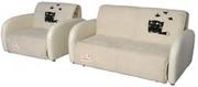 Диван-кровать Fusion Sunny легко впишется в любой интерьер, благодаря традиционным скругленным подлокотникам. В данном случае подлокотники выполняются в искусственной коже трех цветов на выбор: молочный, коричневый, черный.