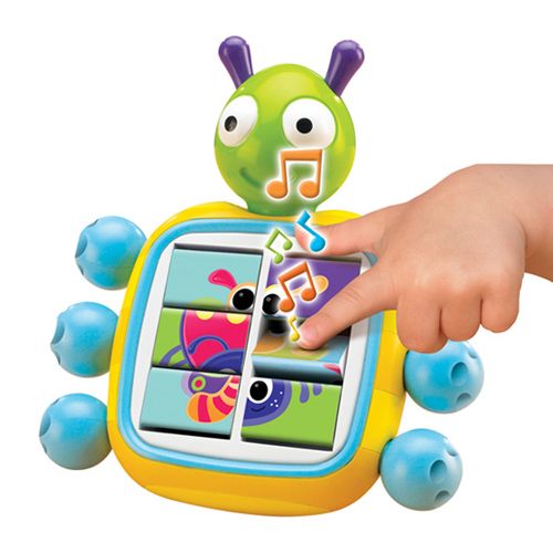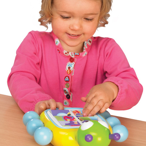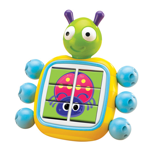 В центре жучка расположены 6 прямоугольников-пазлов, из которых можно составить образы пестрой бабочки, веселой осы или милой божьей коровки. Пазлы меняются кручением специальных рычажков голубого цвета, расположенных по бокам жучка. Каждый их поворот сопровождается звуковым эффектом. Кроме того, при нажатии на пазлы также издается звук.