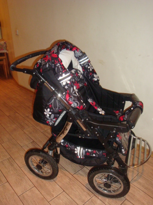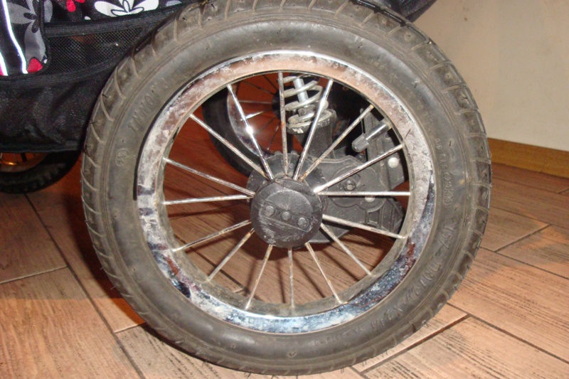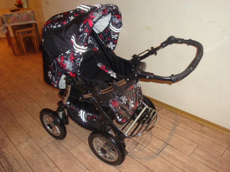 - колеса – хромированные на подшипниках , съемные, амортизация за 4 пружинах, тормоз на 4 колеса. Высота - позволяет преодолеть любые сугробы;