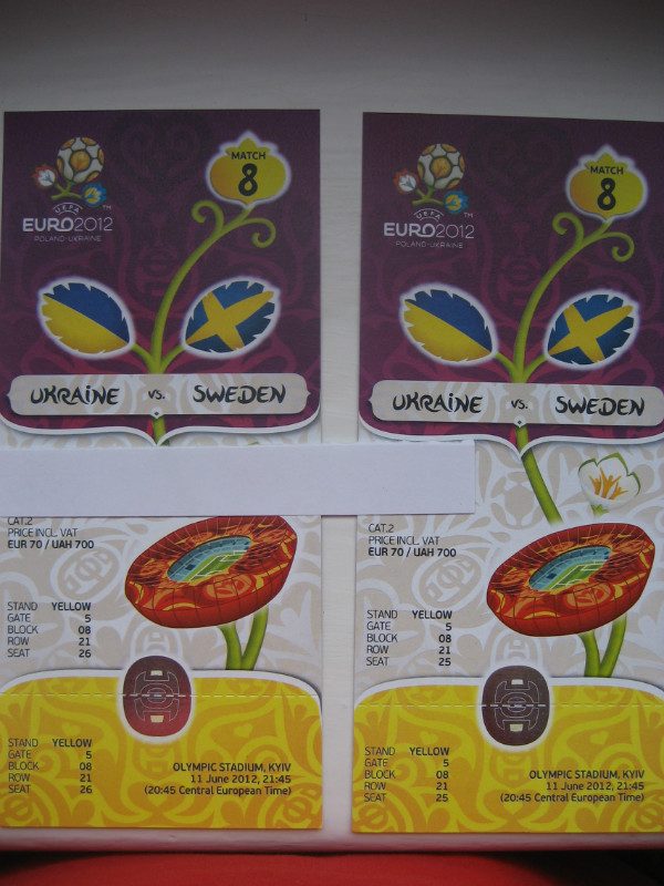 11.06.12 Украина - Швеция; 2 места, 2 категория. 1500 гривен!!! - Билеты на футбол