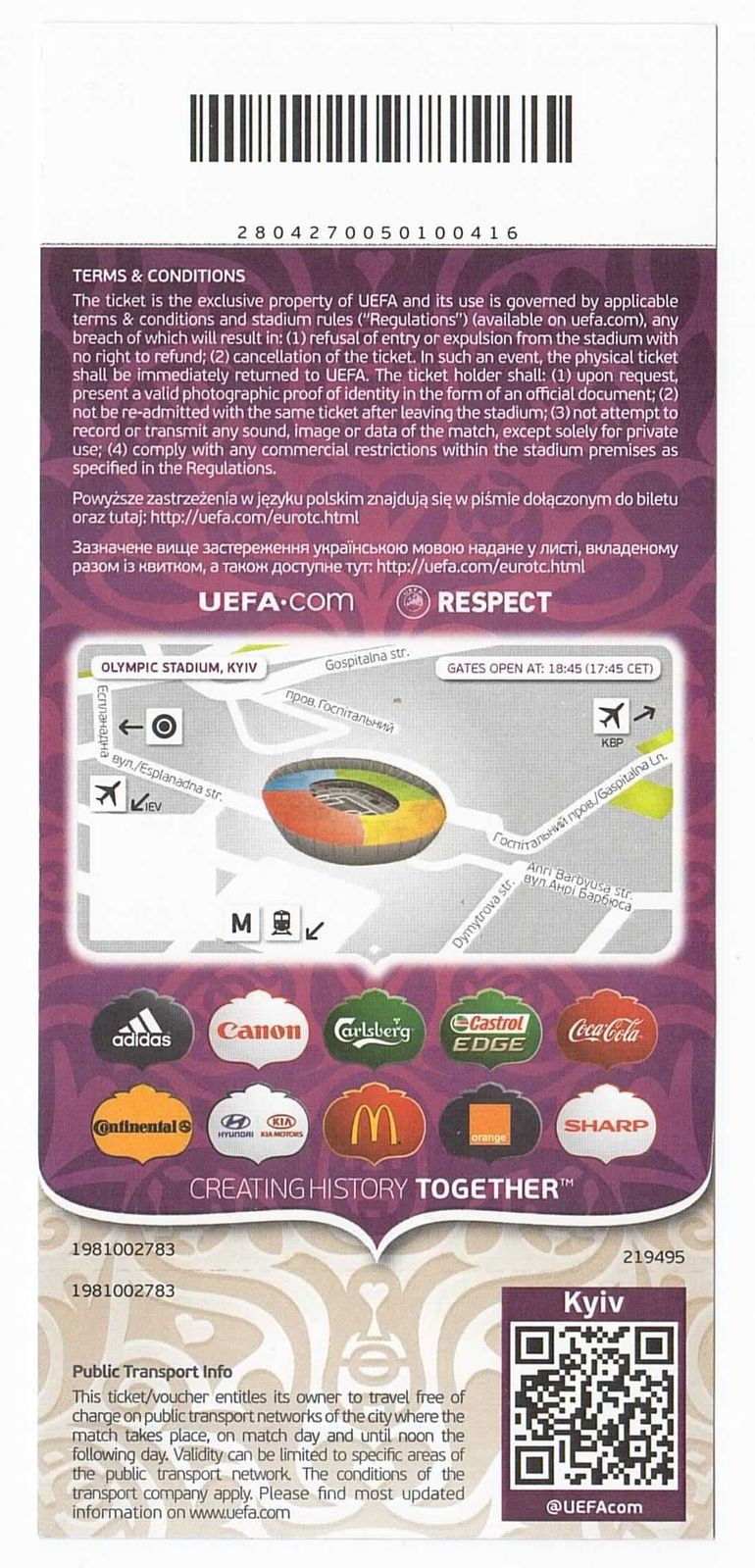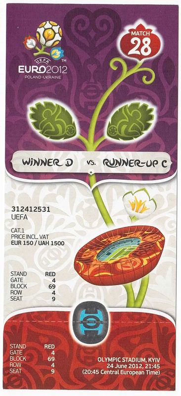 Билеты 1-категории на 1/4 Евро 2012, г.Киев. - Билеты на футбол
