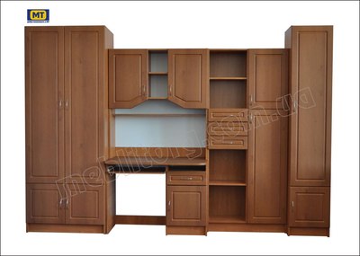Сделана из качественного ДСП. Фасады МДФ. Включает в себя шкаф для одежды, выдвижную подставку для клавиатуры и много отделов для разнообразного использования. Украсит комнату и создаст уют в комнате вашего ребенка. Код - 002 Цвет – ольха. Размеры: шир. 3,00 м., выс. 2,05 м., глуб. 0,52 м. |