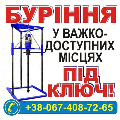 Буріння свердловин у важкодоступних місцях від 250 грн. за 1 м. 125 діаметер монтаж, сервіс. сезона акція 0674087265, 0445317775 |